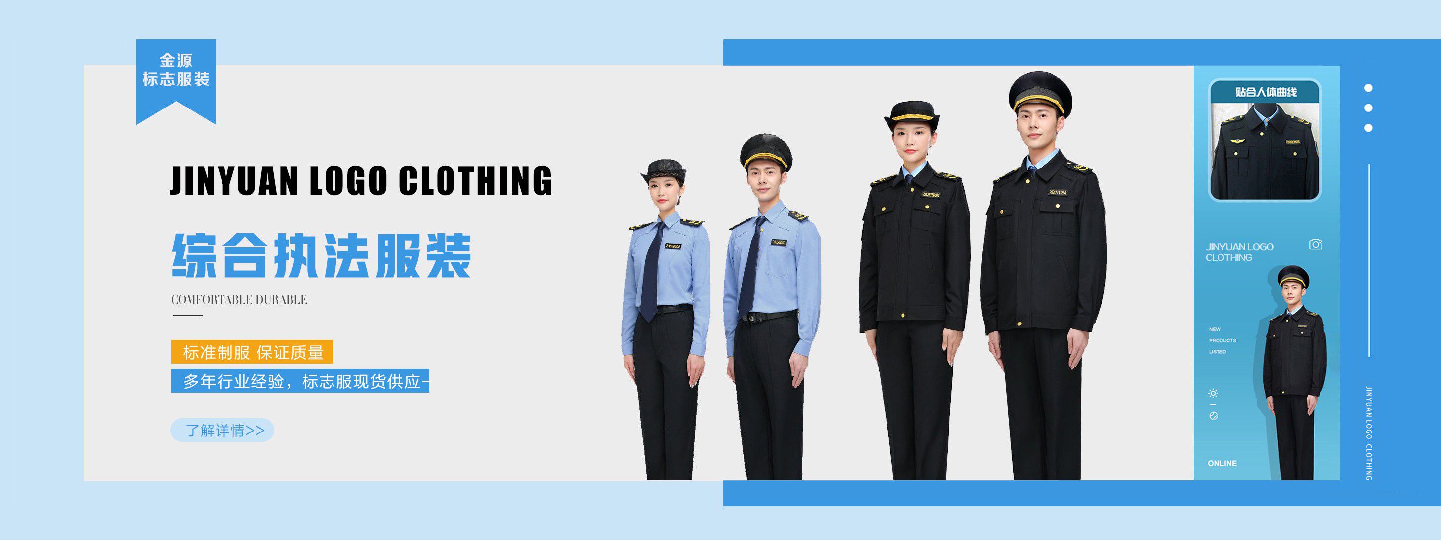 聊城東昌府區金源標志服裝有限公司是一家專業經營標志服裝廠,標志服,綜合執法服裝,制服,城管制服,交通執法標志服,應急管理執法服裝的大型企業?! 」咀溆诿利惖摹敖彼恰?山東聊城市,企業占地面積25余畝,廠區建筑面積12000平方米,職工550余人,其中各類專業技術人員40余人,公司下設綜合部、生產技術部、經營部、質檢部、財務部、設計研發中心及五大車間等部門,主導產品以標志服,綜合執法服裝,制服,城管制服,交通執法標志服,應急管理執法服裝為主。擁有從日本、德國、美國引進的服裝生產流水線3條等世界一...
